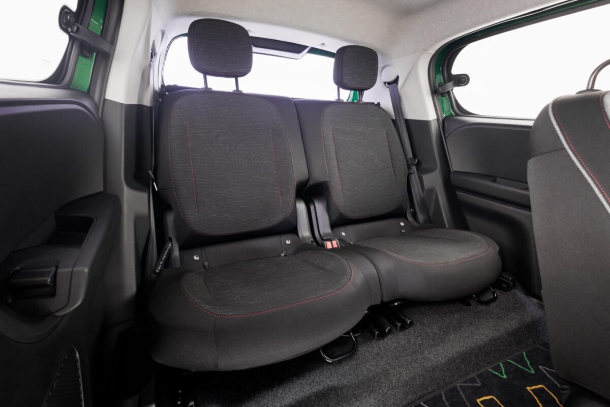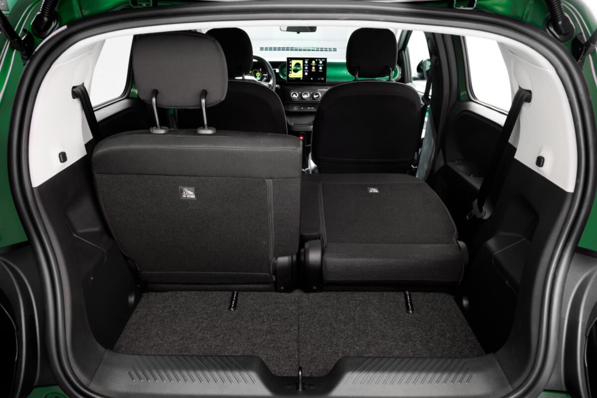 Scaunele spate culisante și posibilitatea de rabatare completă a celui din față permit transportul obiectelor mai lungi. Materialele sunt plăcute la atingere, iar nuanțele colorate din interior reiau tonurile caroseriei, un detaliu nostalgic și elegant.